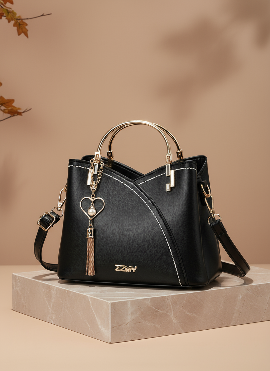 • Strukturovaný design s švy a zlatými prvky pro rafinovaný styl.