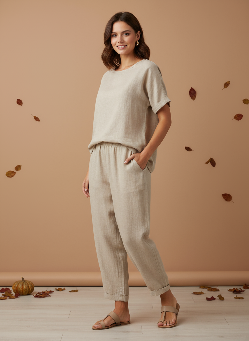 Osvěžte svůj letní vzhled s těmito lněnými kalhotami s volným střihem. Ideální pro chvíle relaxace a každodenní pohodlí.