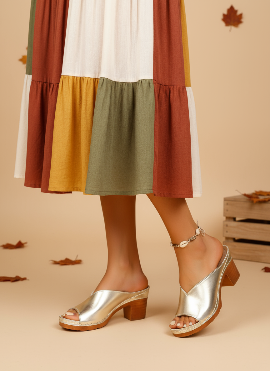 Tyto sandály s nízkým podpatkem kombinují pohodlí a eleganci, což je ideální volba pro jakoukoli příležitost, od rána do večera.
