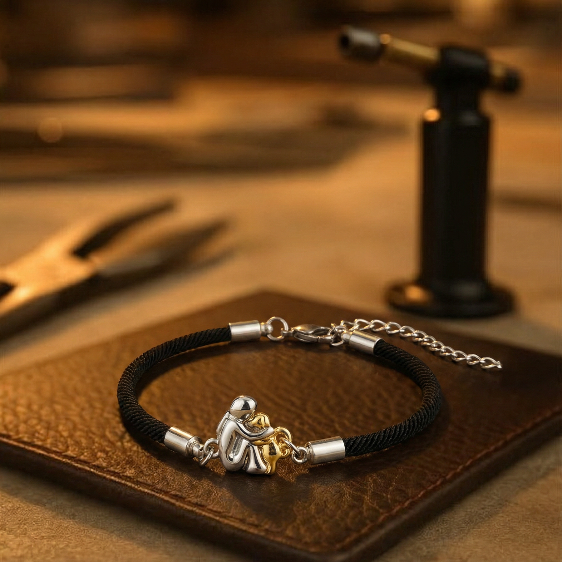 Tento elegantní náramek s přívěskem je jemným způsobem, jak uchovat speciální vzpomínky blízko. Design ženy a jejího psa zachycuje lásku, loajalitu a klidné pohodlí — jednoduché připomenutí vazby, která nikdy nevybledne. S měkkou černou šňůrkou a lehkým stříbrno-zlatým přívěskem je ideální pro každodenní nošení nebo jako pozorný dárek z srdce.
