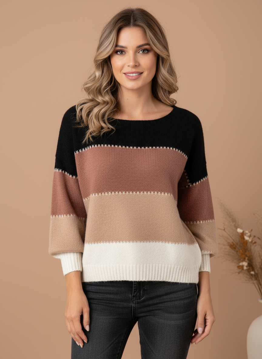 Pohodlný svetr s vysokým límcem, který spojuje komfort a eleganci. Jeho měkká textura poskytuje teplo a volný střih ho činí ideálním pro každodenní příležitosti, ale také pro zvláštní chvíle. Nadčasový kousek, který dokonale doplní jakýkoli outfit se stylem.